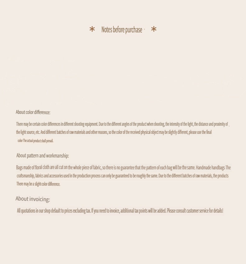 | Material | Bag Size | Opening Method | Internal Structure | Craftsmanship | With Compartment | Number of Shoulder Straps |