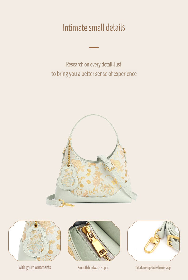 | Song Brocade + Genuine Leather | Medium | Zipper | Phone Pocket | Embroidery | No | Single |
